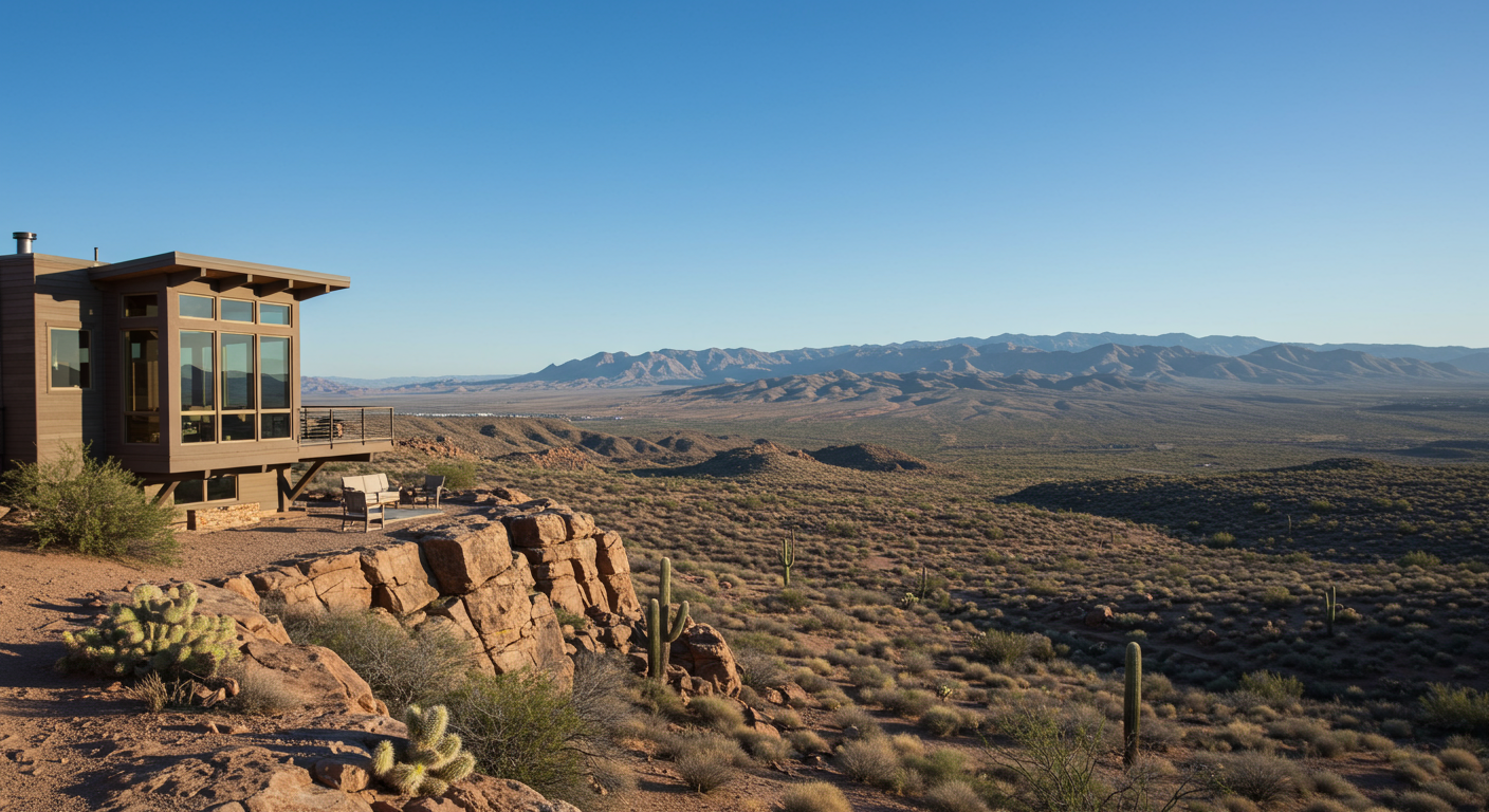 Another fantastically perched home, this cabin-inspired house is set into a cliff’s edge with views overlooking the historic Terlingua Ghost Town and the Chisos mountain range of Big Bend National Park. It’s an A+ stargazing spot.