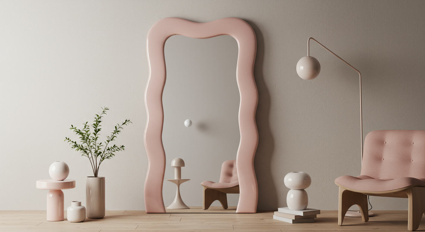 Pink ‘Ultrafragola’ Mirror Designed by Ettore Sottsass for Poltronova, Italy
